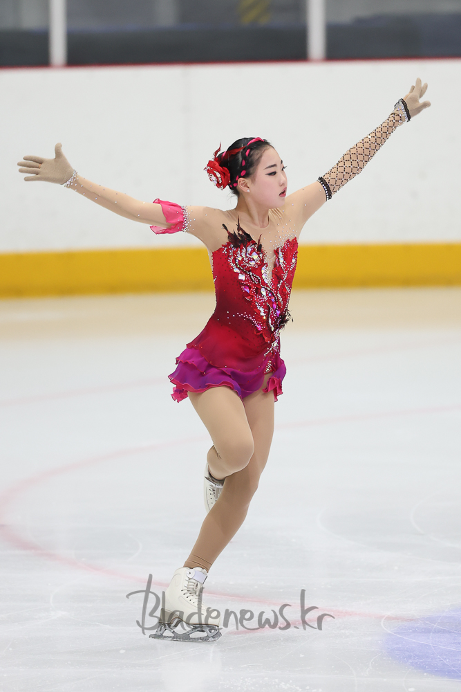 (춘천, 성대우) 21일 오후 춘천의암빙상장에서 진행된 제106회 전국동계체육대회 2일 차 경기에서 B조 여자 15세 이하부에 출전한 조하율(인천성리중학교)이 쇼트프로그램을 연기하고 있다.
